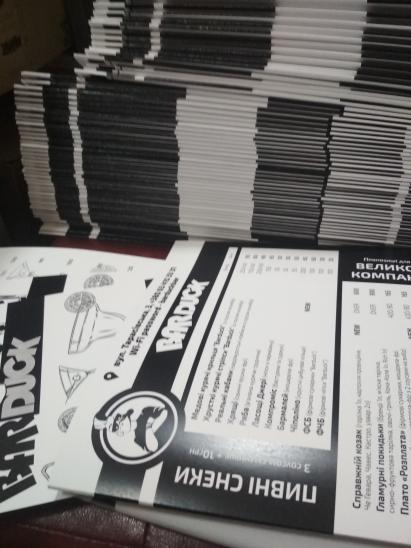 Виготовлення на дизайнерському картону, пластику, тканині, металу, дереву, шкірі.....